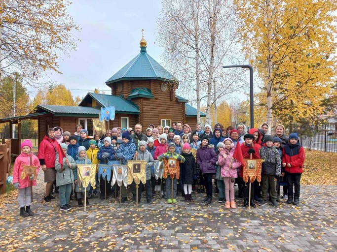 Приходы.ру 29.09.2022. Новый учебный год в воскресной школе соборного храма во имя святителя Алексия Московского г. Нягани Ханты-Мансийского автономного округа начался 24 сентября. В этот день воспитанники прошли крестным ходом и вместе с родителями провели ярмарку.