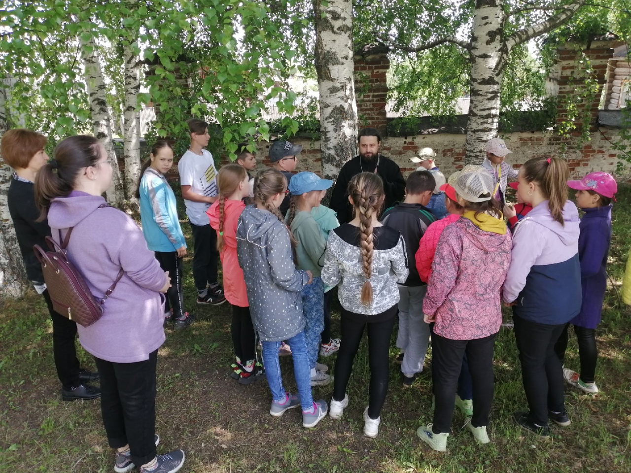 Настоятель храма священник Сергий Окуловский встретился с детьми из школьного летнего лагеря и после молебна побеседовал с ними на свежем воздухе о том, откуда взялось разнообразие мира, сообщает приходской сайт. Затем они посетили «Комнату ремесел» — небольшой музей со старинной утварью, в том числе берестяными изделиями.