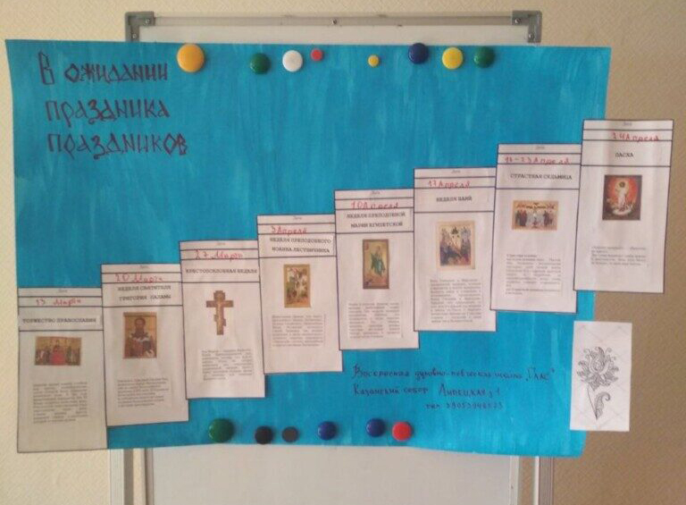 Разгадывая ребусы, загадки, кроссворды и шифры, дети вместе с родителями создали «маршрут» к празднику Пасхи. Итогом работы стал символический календарь Великого поста.