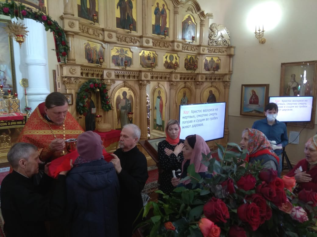 По договоренности с амурским отделением Всероссийского общества глухих в храме собрались двенадцать членов общества вместе с сурдопереводчиком. После богослужения все присутствующие прошли крестным ходом вокруг храма и получили небольшие пасхальные подарки.