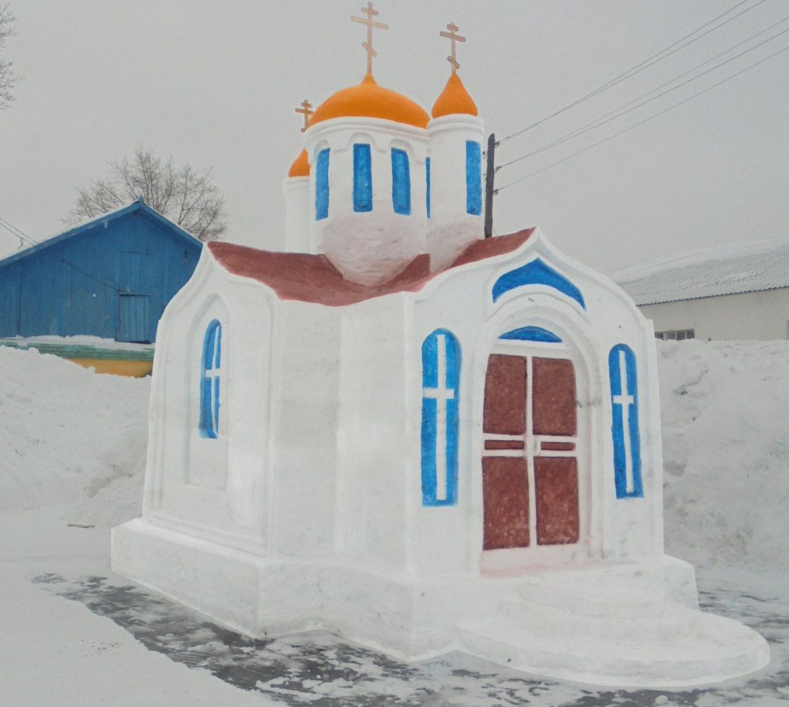 В исправительной колонии № 13 в Новосибирской области заключенные изготовили полноразмерный макет часовни из снега. Высота получившегося сооружения составляет примерно 6 метров, габаритные размеры — 6 на 8 метров.