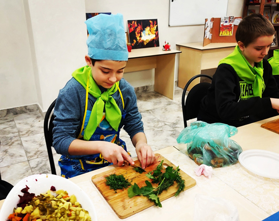 На мастер-классе дошкольники и младшие школьники с помощью родителей приготовили винегрет. После занятия состоялась общая трапеза.