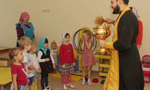 Открытие стало по-настоящему семейным. К полудню дети познакомились друг с другом и увлеченно играли вместе, а когда в группу зашел духовник детского сада иерей Андрей Маношкин, радости малышей не было предела. Отец Андрей напомнил своим подопечным, как правильно совершать крестное знамение и получать благословение от священника.