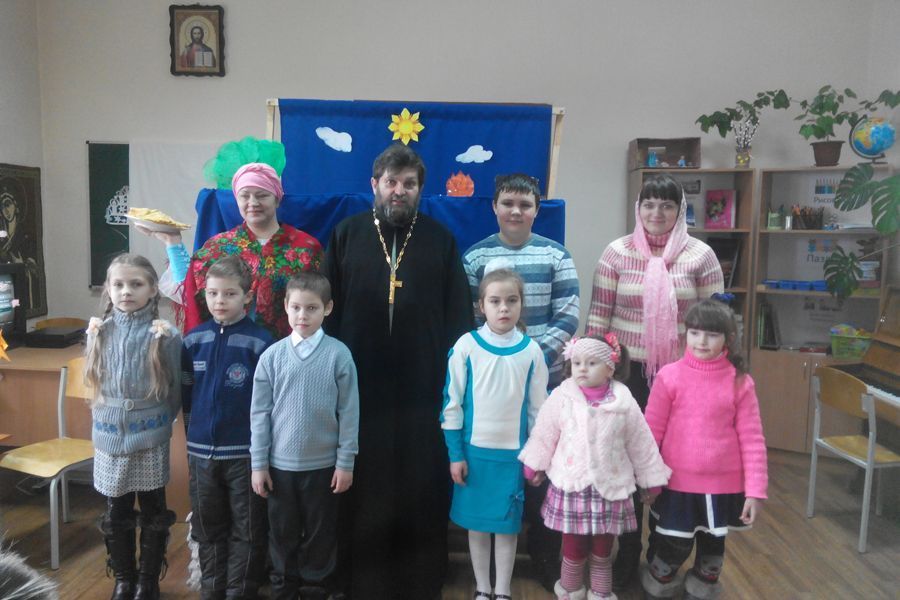 В день Сретения Господня на территории Вознесенского храма в донбасском селе Новолуганское прошёл детский праздник масленицы. Воспитанники воскресной школы храма показали прихожанам и своим родителям кукольное представление о добродетелях. Детей ждали весёлые игры и угощение блинами, сообщает сайт Горловской епархии.