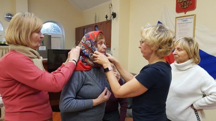 Ведущая Валентина Бечина представила вниманию прихожан различные способы ношения головных уборов и шарфов, сообщает сайт Калининградской епархии. Слушатели, следуя ее советам, научились самостоятельно использовать несколько вариантов ношения шарфов разных размеров, цветов и фактур.