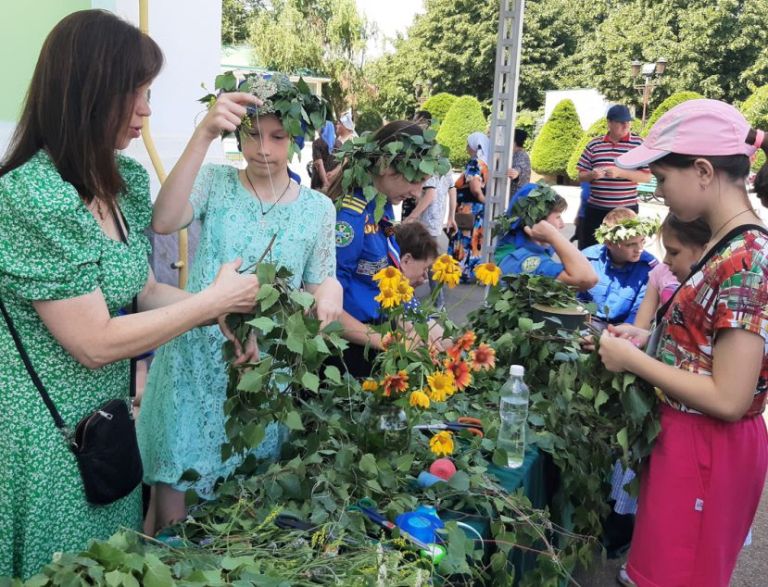 Приходы.ру 28.06.2024. 23 июня 2024 года, в день Святой Троицы, по окончании Божественной литургии специалисты тихорецкого творческого объединения «Мир духовности» провели на подворье храма Ксении Петербургской города Тихорецка Краснодарского края мастер-класс «Плетём венок».