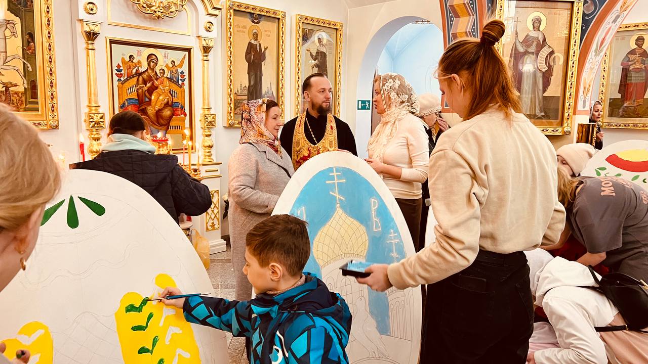 Приходы.ру 19.04.2023. В день Светлого Христова Воскресения в кафедральном соборе Рождества Христова г. Южно-Сахалинска прошел мастер-класс по раскрашиванию стендовых пасхальных яиц «Пасхальные узоры».