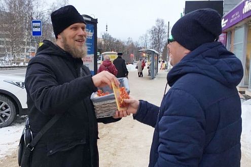 Мешочки с шоколадными монетами раздал людям в центре Архангельска настоятель Успенского храма священник Кирилл Кочнев. Он поздравлял прохожих с памятью святителя Николая Чудотворца и пересказывал заинтересовавшимся эпизоды из его жития.