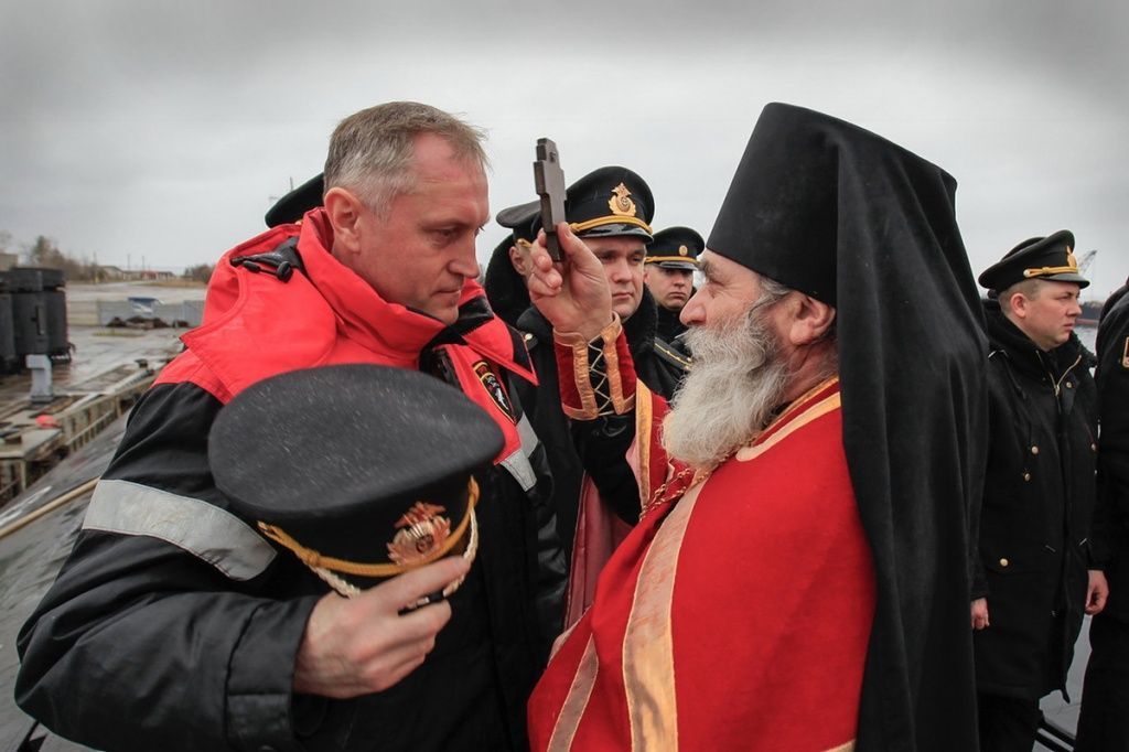 Богослужение состоялось на борту тяжелого атомного подводного ракетного крейсера «Дмитрий Донской», для этого прямо на корпусе был установлен походный иконостас. Вместе со священником помолился экипаж подводной лодки. Отец Вениамин благословил моряков на служение и пожелал им «семь футов под килем», сообщает пресс-служба Архангельской епархии.