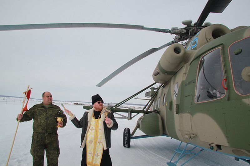 В Ужурском районе Красноярского края священники совершили молебен на борту военного вертолета.