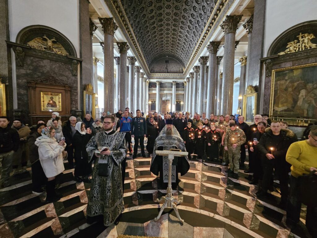 Приходы.ру 25.02.2026. 24 февраля 2026 года, в четвертую годовщину начала специальной военной операции, в Казанском кафедральном соборе прошел молебен о здравии воинов – участников СВО.