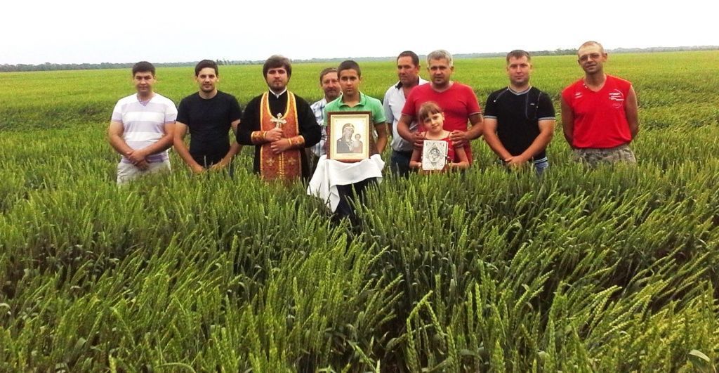 Священник помолился вместе с фермерами о хорошем урожае. Перед началом уборки зерновых культур настоятель храма Архангела Божия Михаила, что в станице Государственной (Советской), иерей Дионисий Федюнин совершил чин освящения «полей насеянных».