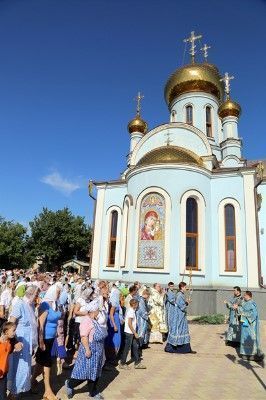 Накануне в храм прибыл чтимый список Почаевской иконы Божией Матери. Помолиться в новоосвящённом храме перед образом Богородицы пришли сотни горловчан, хотя неподалеку от города продолжаются боевые действия – во время крестного хода вокруг храма верующие слышали взрывы.