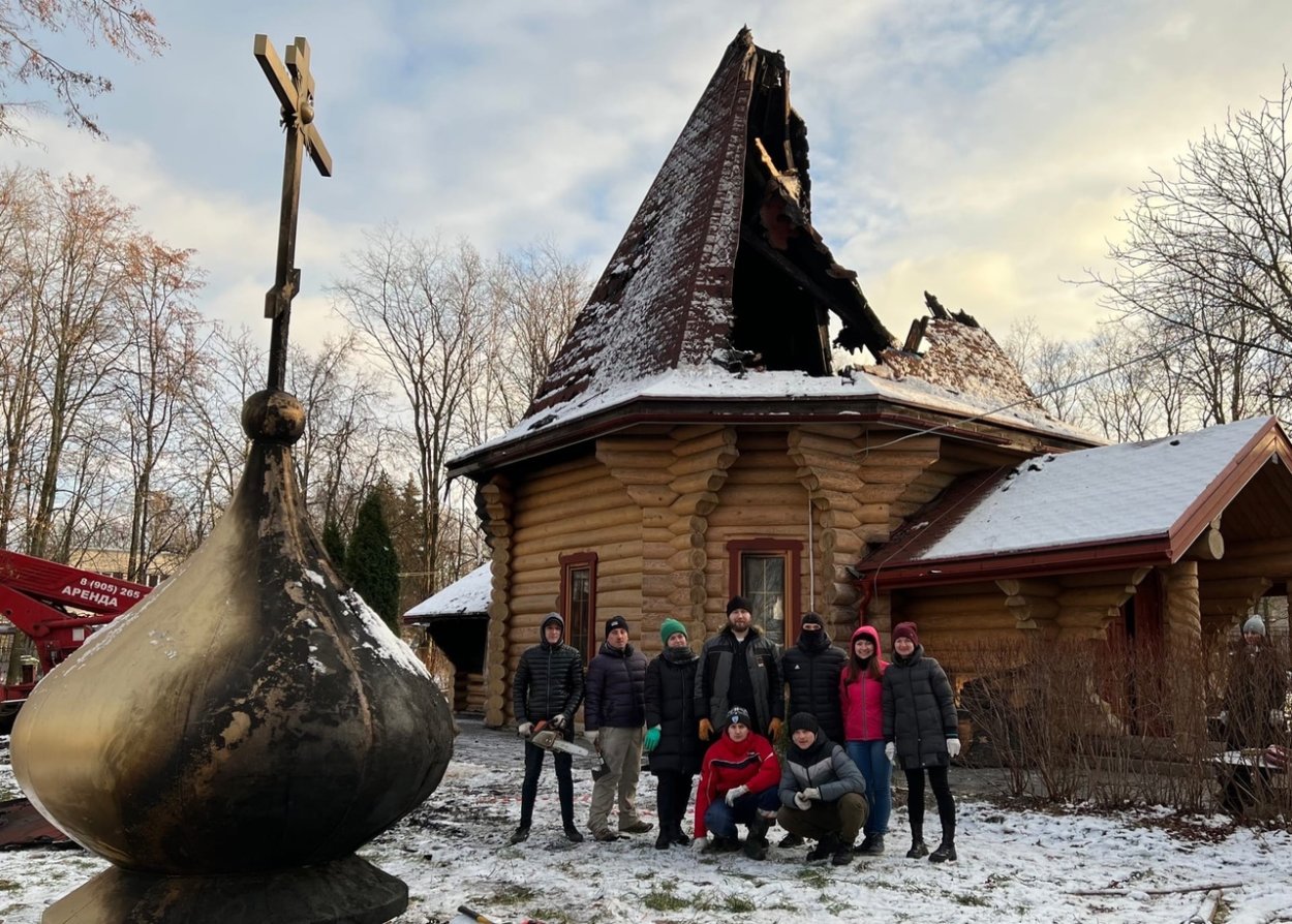 Приходы.ру 21.11.2022. Молодежь прихода во имя святого апостола Иоанна Богослова в г. Кудрово Ленинградской области 19 ноября отправилась с помощью в п. Янино-1. Там в результате пожара пострадал храм священномученика Вениамина, митрополита Петроградского.