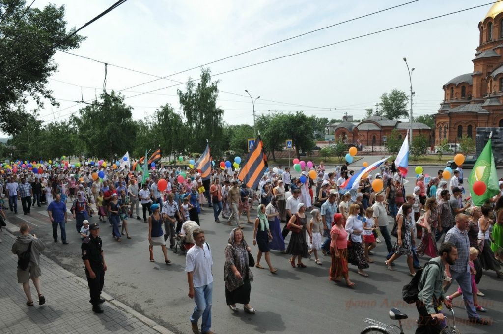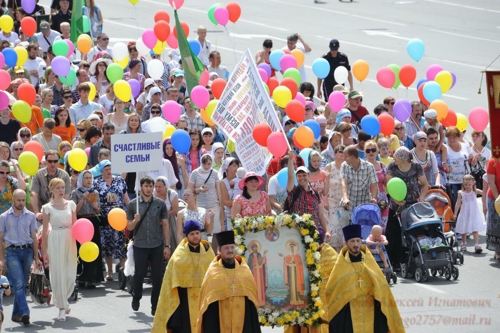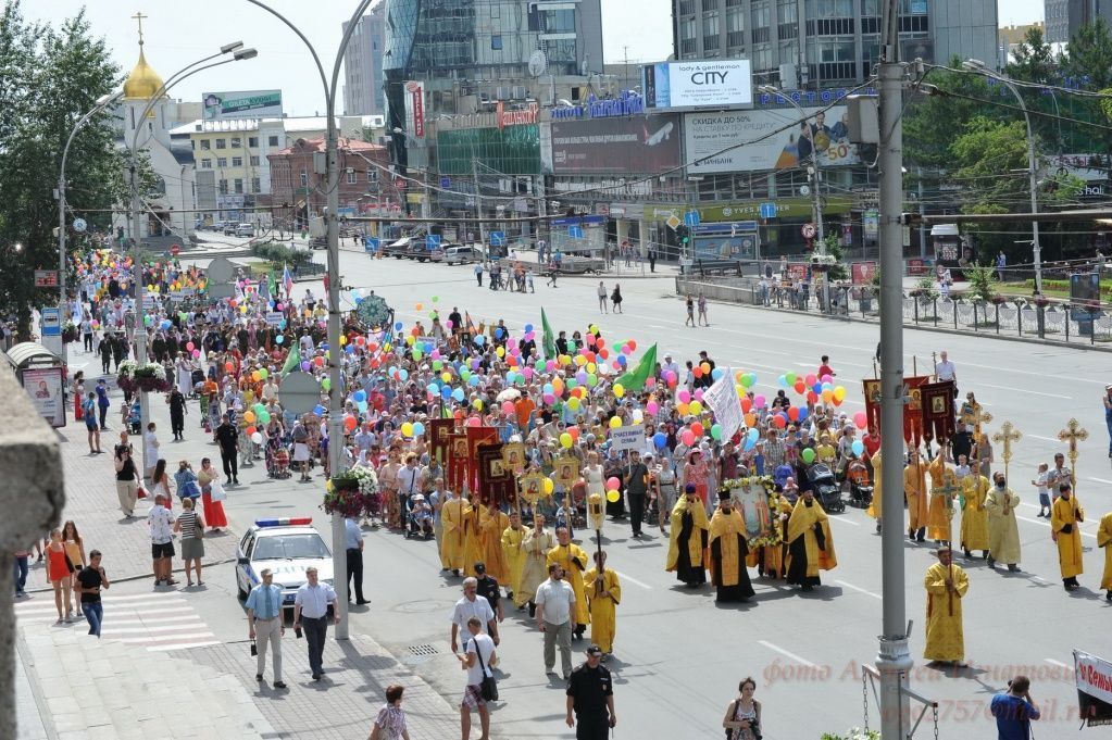 Как сообщает сайт митрополии, столь масштабное празднование проходит в Новосибирске по инициативе епархиального Молодежного совета во второй раз. В этом году маршрут крестного хода несколько изменился: он начался от Александро-Невского собора и завершился молебном у памятника святым Петру и Февронии в Нарымском сквере. В составе крестного хода было сформированно несколько колонн: молодые семьи, представители православных молодежных организаций, спортсмены, военные, певчие – все они держали в руках яркие воздушные шары и плакаты с лозунгами в поддержку семьи и традиционных ценностей. Среди духовенства были молодые священники храмов Новосибирской епархии.