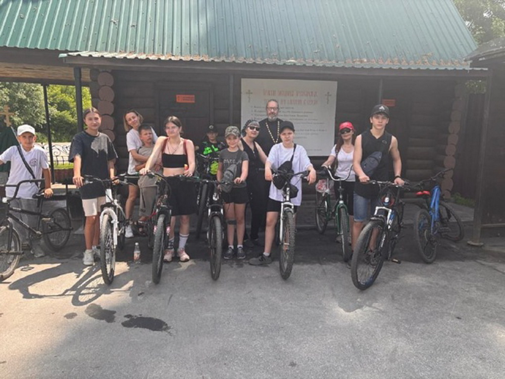 Стартовал велопробег от Кустарной площади, ребята на велосипедах преодолели подъем в гору и несколько километров лесной дороги. Конечной точкой маршрута велосипедистов стала территория святого источника Шурчавый с часовней во имя святителя Николая Чудотворца.