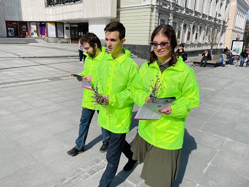 Главная - Вести приходов - Молодые прихожане нижегородских храмов рассказали прохожим о Входе Господнем в Иерусалим