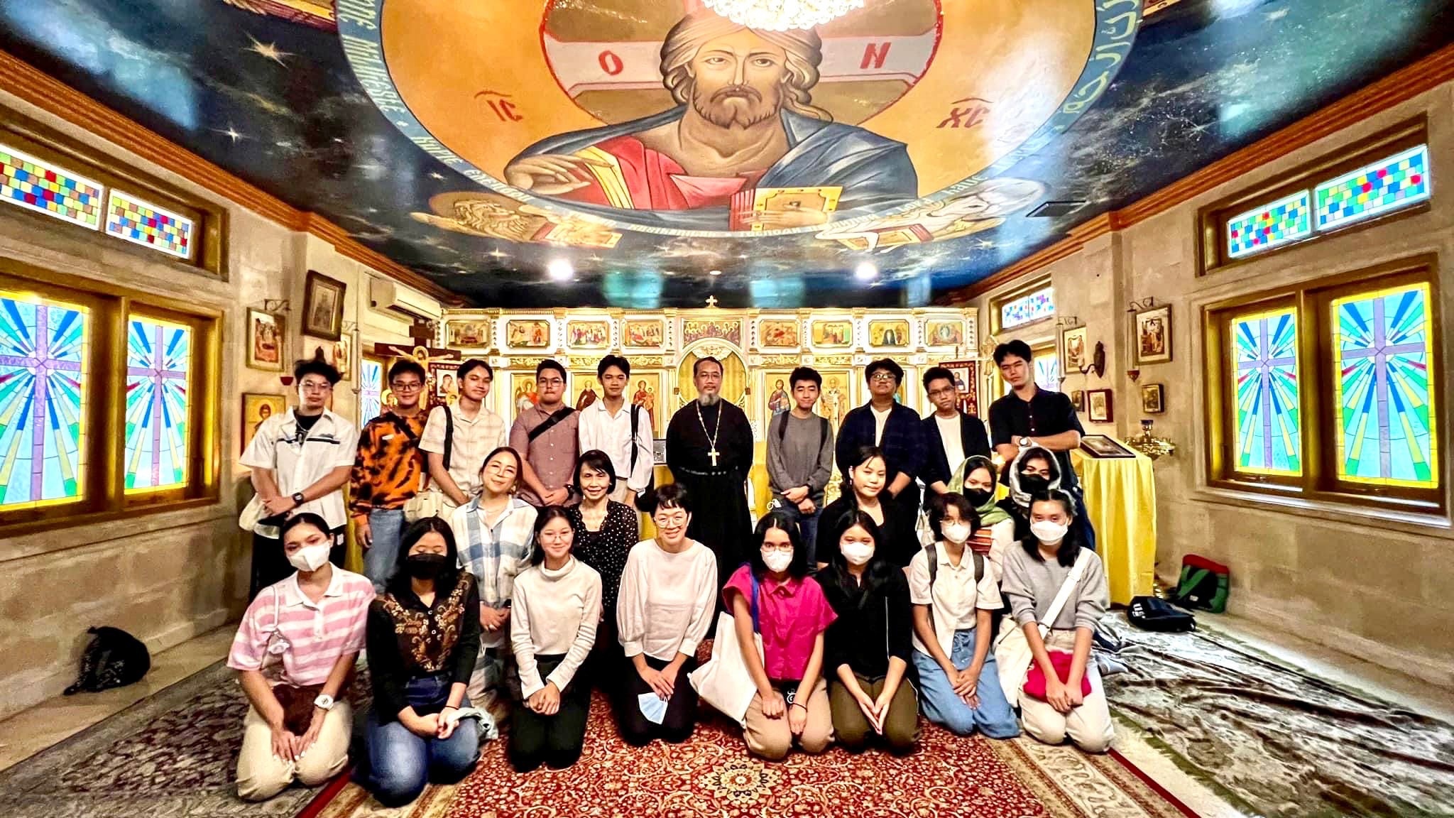 Молодые люди побывали на Божественной литургии, а после совместной трапезы с православными прихожанами прослушали лекцию, которую провел настоятель храма священник Борис Сэтиаван. Отец Борис рассказал о чинопоследовании литургии святителя Иоанна Златоуста и православных традициях.