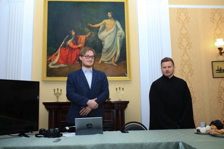 Участники творческого занятия вместе помолились за Божественной литургией. После Сергей Фарковец провел лекцию «Съемка богослужений» и мастер-класс, во время которого церковный фотограф с десятилетним опытом работы поделился своим мастерством.