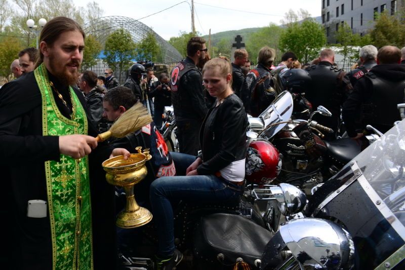 Площадь перед Воскресенским собором Южно-Сахалинска заполнили 30 мая байкеры со своими «железными конями». После общей молитвы ключарь собора иерей Василий Иванов окропил святой водой стройные ряды мотоциклов.