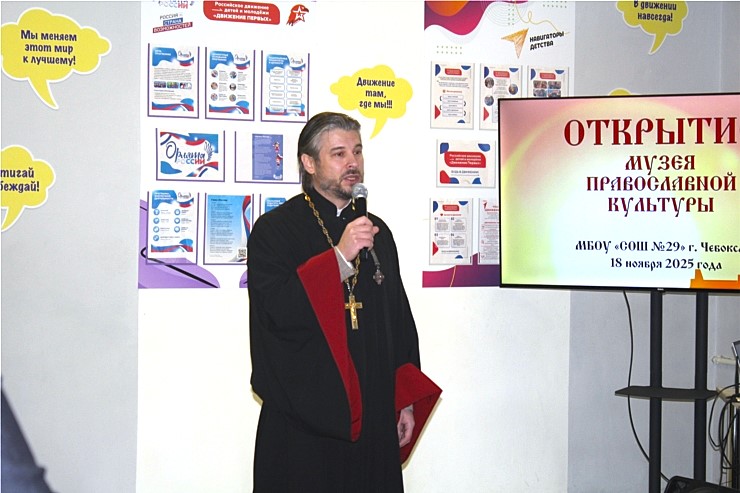Приходы.ру 24.11.2025. 18 ноября 2025 года в средней школе № 29 города Чебоксары состоялась торжественная церемония открытия Музея православной культуры. Его коллекция сформирована за счёт безвозмездной передачи экспонатов в дар музею от православных приходов, педагогов, родителей и учащихся школы.