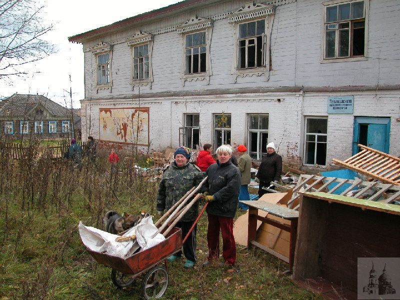 − Наши волонтёры вместе с местными жителями расчистили территорию вокруг церкви, убрали из школьных классов мусор и хлам, − рассказала С.А. Мельникова. − В акции принял участие священник Александр Сербский, благочинный Чеховского района Московской области, правнук настоятеля церкви в Теблешах Александра Маслова, умершего в 1916 году. Отец Александр − совершенно замечательный человек, он так загорелся идеей спасти эту церковь!