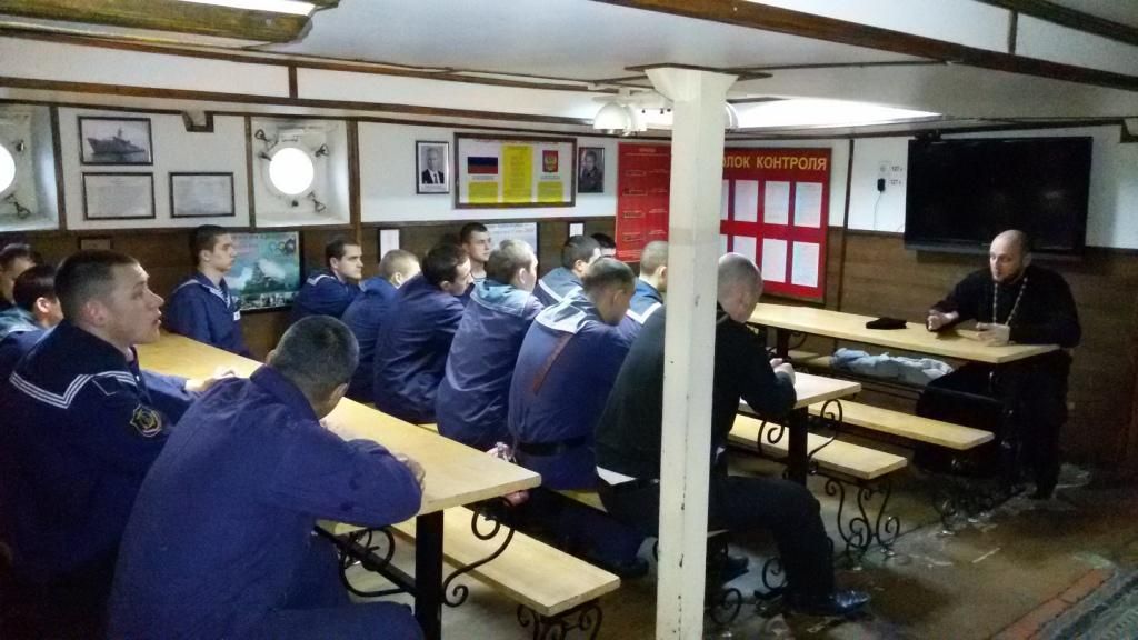 Военные моряки задали пастырю много вопросов о роли мужа в христианской семье, о том, как не поддаться искушениям, живя в современном социуме, а также о том, как принимать мужские решения и нести за них ответственность.