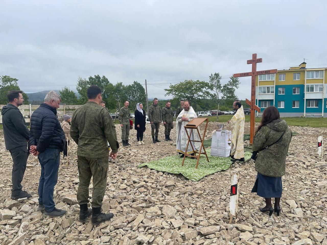 Приходы.ру 21.06.2024. 16 июня 2024 года на территории воинской части в посёлке Лагунное на острове Кунашир был совершён чин закладки храма во имя Архистратига Божия Михаила.