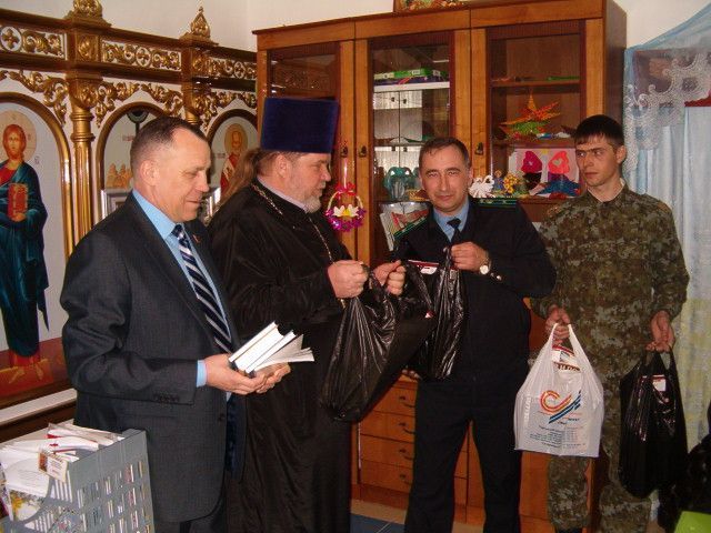 По окончании богослужения настоятель прихода протоиерей Сергий Сенник и иерей Сергий Ющенко тепло приветствовали гостей. После краткой беседы о Святой Четыредесятнице и о Дне православной книги, который отмечается в память выхода первой русской печатной книги «Апостол», офицерам передали подарки для погранзастав ‒ четыре комплекта библиотечек духовной литературы, собранные прихожанами. Офицеры обещали передать подарки по назначению.