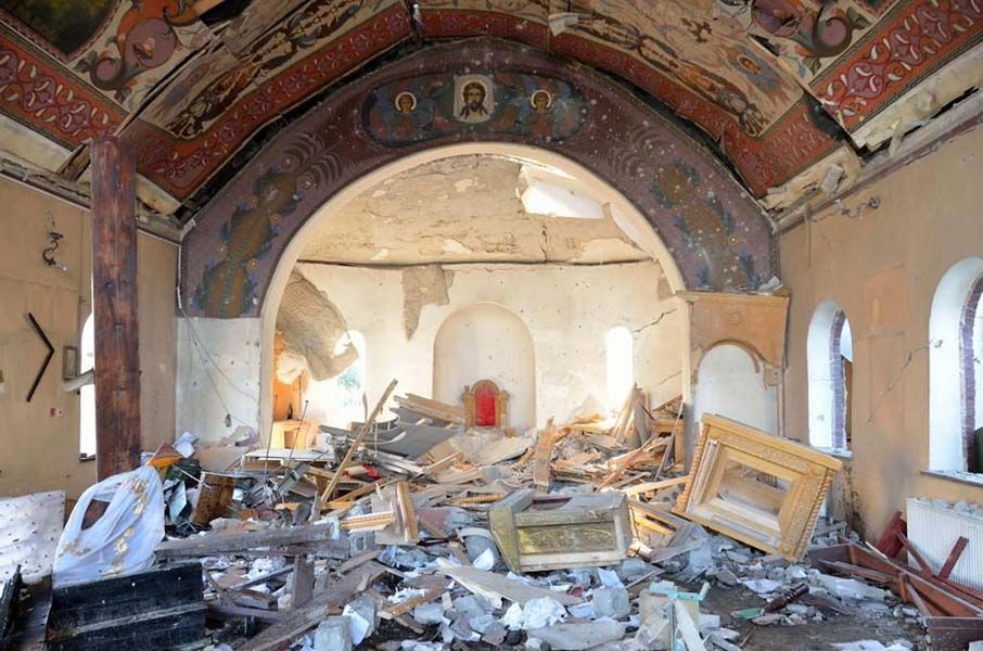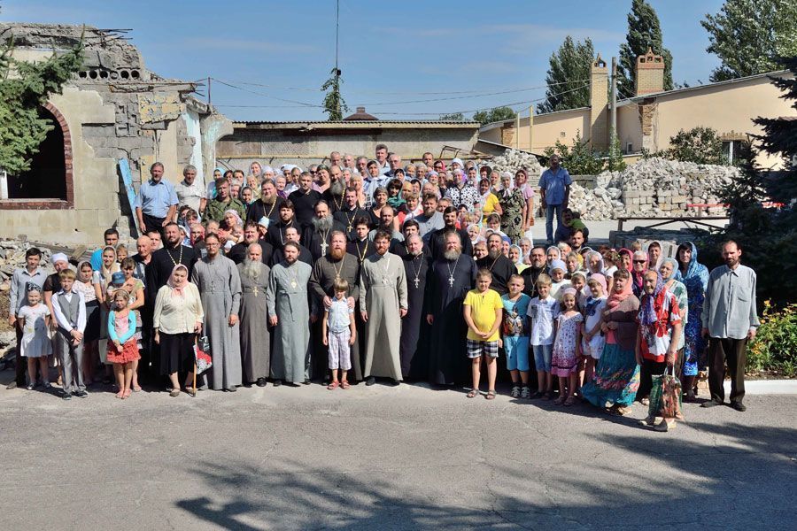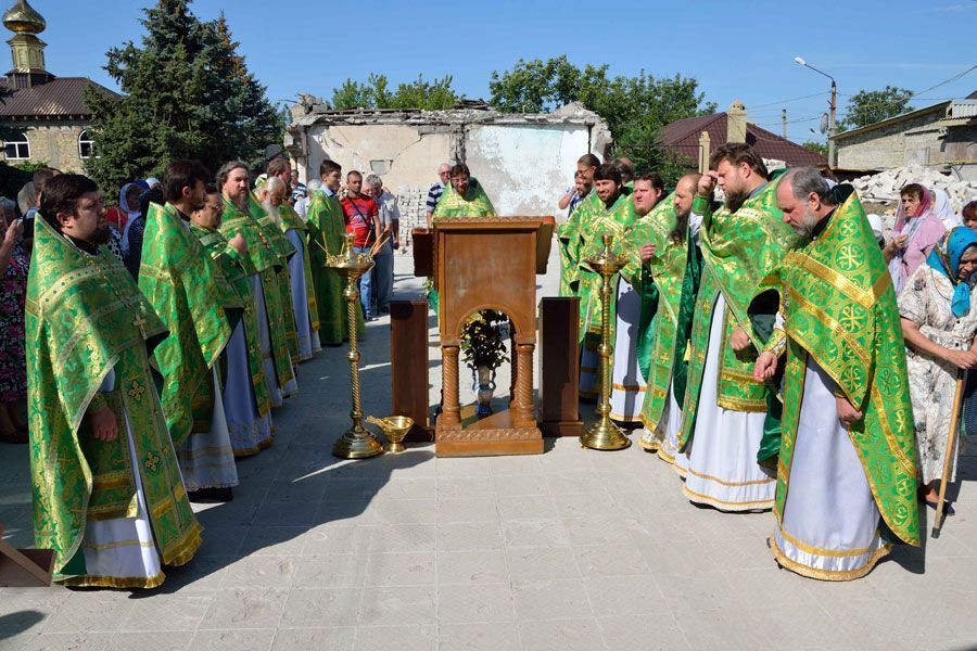 Божественную литургию на руинах церкви святого праведного Иоанна Кронштадтского в городе Кировском, разрушенной прямым попаданием снаряда, совершил собор духовенства трех благочиний Горловской епархии – Шахтерского, Енакиевского и Дебальцевского.