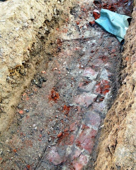 После вскрытия асфальта под слоем земли археологи нашли кирпичную кладку исторического фундамента. Точно такие же добротные «царские» кирпичи были ранее подарены приходу петербурженкой Верой Митрофановой. Она подобрала их на площади после разрушения храма и хранила много лет как святыни.