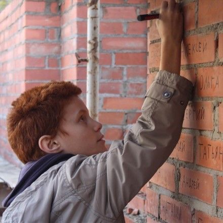 После молебна и традиционного чаепития верующим раздали маркеры и длинные списки жертвователей. «Сейчас возводится первый этаж нашей церкви, и мы под руководством настоятеля священника Сергия Стрекалина решили вывести на кирпичах имена всех тех, кто по мере сил помогал и помогает в нашем добром начинании», − рассказал активист общины Филипп Грилль.