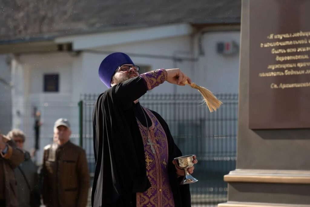 На территории университетской больницы в Симферополе установили памятник святителю Луке (Войно-Ясенецкому)