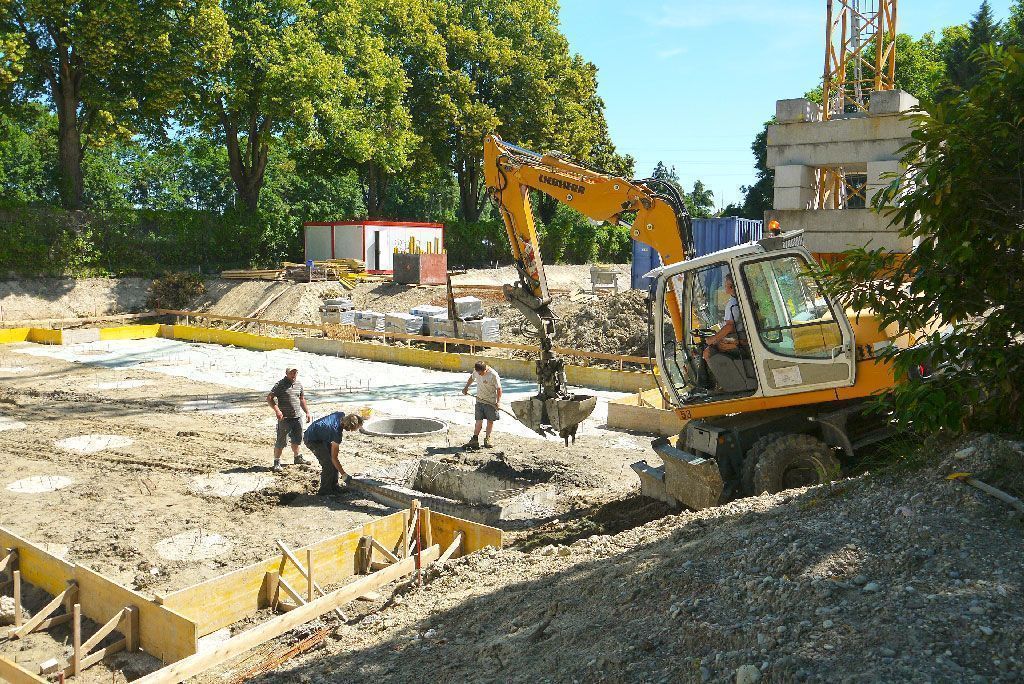 С 26 мая на участке уже началось возводение бетонных конструкций двух зданий, для чего было установлено необходимое оборудование, включая 30-метровый кран.