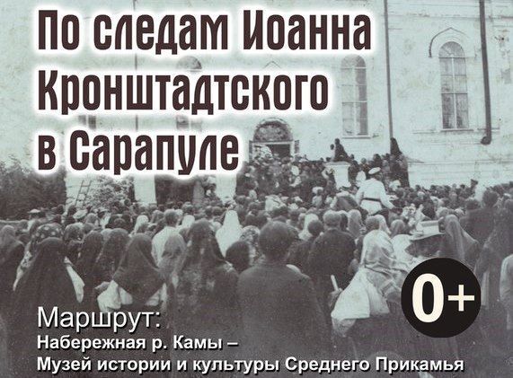 На народную экскурсию «По следам Иоанна Кронштадтского в Сарапуле» приглашаются жители и гости города. По благословению митрополита Ижевского и Удмуртского Викторина, временно управляющего Сарапульской епархией, путешествие по историческому центру города с рассказом о Кронштадтском пастыре и посещении им Сарапула в 1904 году состоится 14 июня, в 25-ю годовщину прославления святого праведного Иоанна.