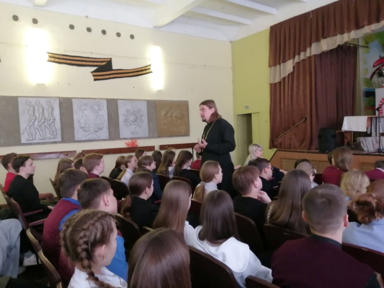 Приходы.ру 17.12.2024. 13 декабря 2024 года в школе № 2 города Щигры Курской области прошло мероприятие на тему «Профилактика нецензурной лексики среди подростков». Беседа для обучающихся 6-8-х классов прошла с участием педагога-психолога ОКУ «Детский центр «Импульс» И.В. Букреевой и настоятеля храма преподобного Серафима Саровского города Щигры иерея Владимира Букина.