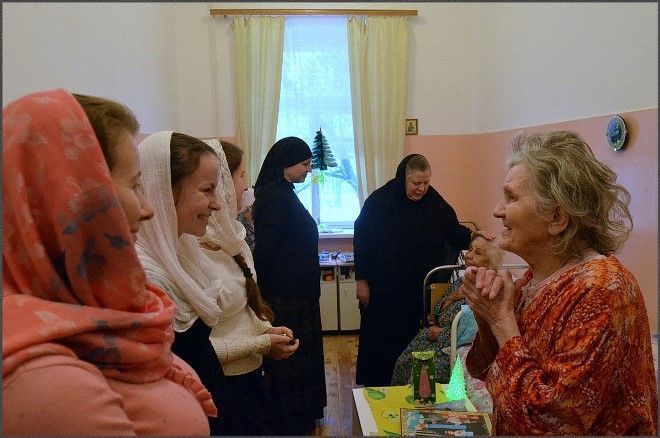 Священник и прихожане поздравили постояльцев этого социального учреждения с Рождеством Христовым, поговорили с ними, произнесли слова утешения и добрые пожелания; для каждого были спеты колядки.