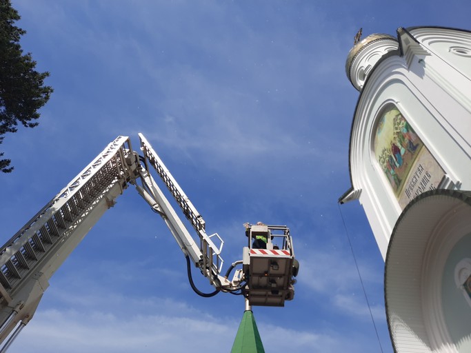 Обновление иконы стало возможным благодаря пожертвованиям семьи прихожан храма. Спецавтомобиль-автолестницу для установки предоставила местная пожарная часть.