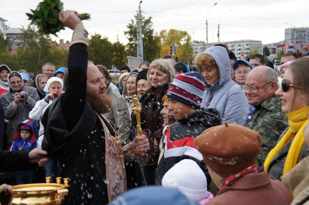 − Вчера вся полнота Православной Церкви встречала праздник Воздвижения Креста Господня. Сегодня первый день попразднства, и мы с вами воздвигаем, устанавливаем новый крест, восстанавливаем справедливость, – обратился к собравшимся настоятель прихода строящегося храма иеромонах Георгий (Исаков). – Все мы переживаем то, что произошло. Но мы, православные христиане, должны быть образцом поведения, образцом культуры и жертвенности, которая не приносит вреда, но наоборот, сплачивает людей. И когда случается что-то негативное, правильнее всего будет тихонечко помолиться о том, чтобы Господь вразумил обидчиков, очистил их души, открыл сердца для любви и благодати.