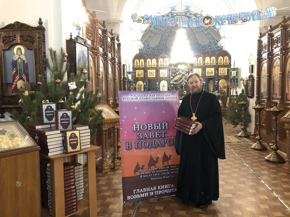 Приходы.ру. 29.01.2021. С 7 по 31 января в Рославльской епархии проходит миссионерско-просветительская акция «Новый Завет в подарок». В храме можно получить подарочное издание книг Священного Писания, узнать об истории их написания и содержании, авторах, традициях толкования.