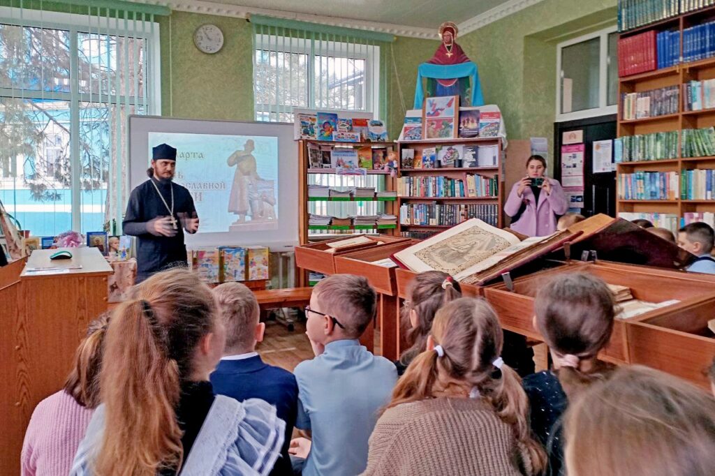 Приходы.ру 04.03.2026. 3 марта в библиотеке духовного возрождения Покровского храма станицы Каневской на Кубани прошла встреча «Для души и разума», посвящённая Дню православной книги. Учащимся четвертого класса лицея рассказали об истории книгопечатания, о первой печатной книге «Апостол», Книге книг – Библии и многих других изданиях из сокровищницы книжной премудрости.