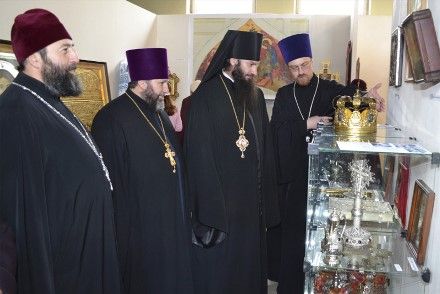 Епископ Ириней выступил в качестве экскурсовода и охотно рассказал о некоторых экспонатах, сообщает сайт Орской епархии.