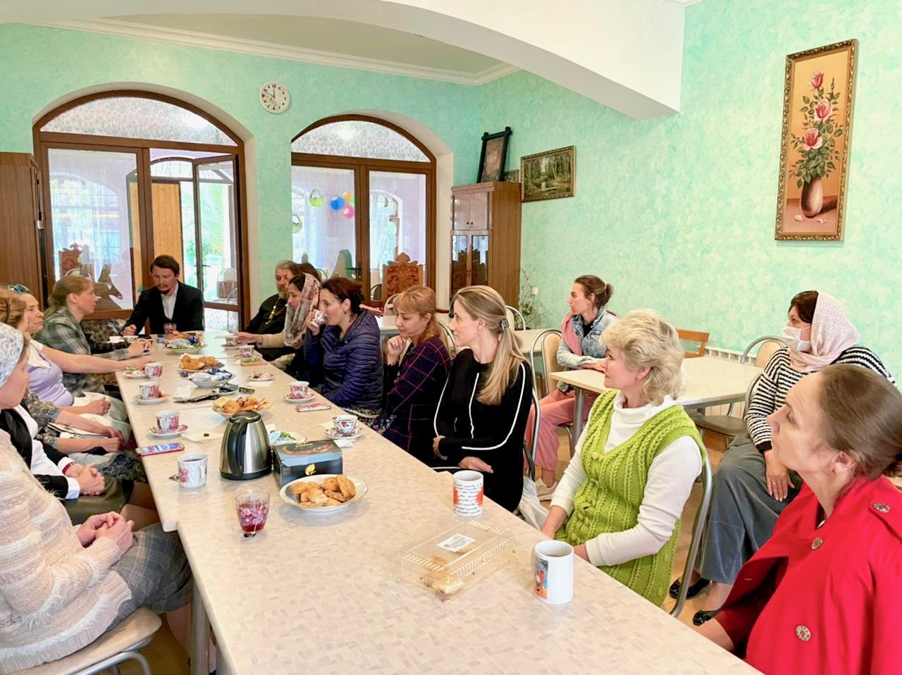 Во встрече участвовали прихожане храма Живоначальной Троицы и Князь-Владимирского собора, директор и педагоги воскресной школы, волонтеры. После чаепития приглашенный психолог провела с собравшимся тренинг психологической разгрузки, сообщает сайт Сочинской епархии.