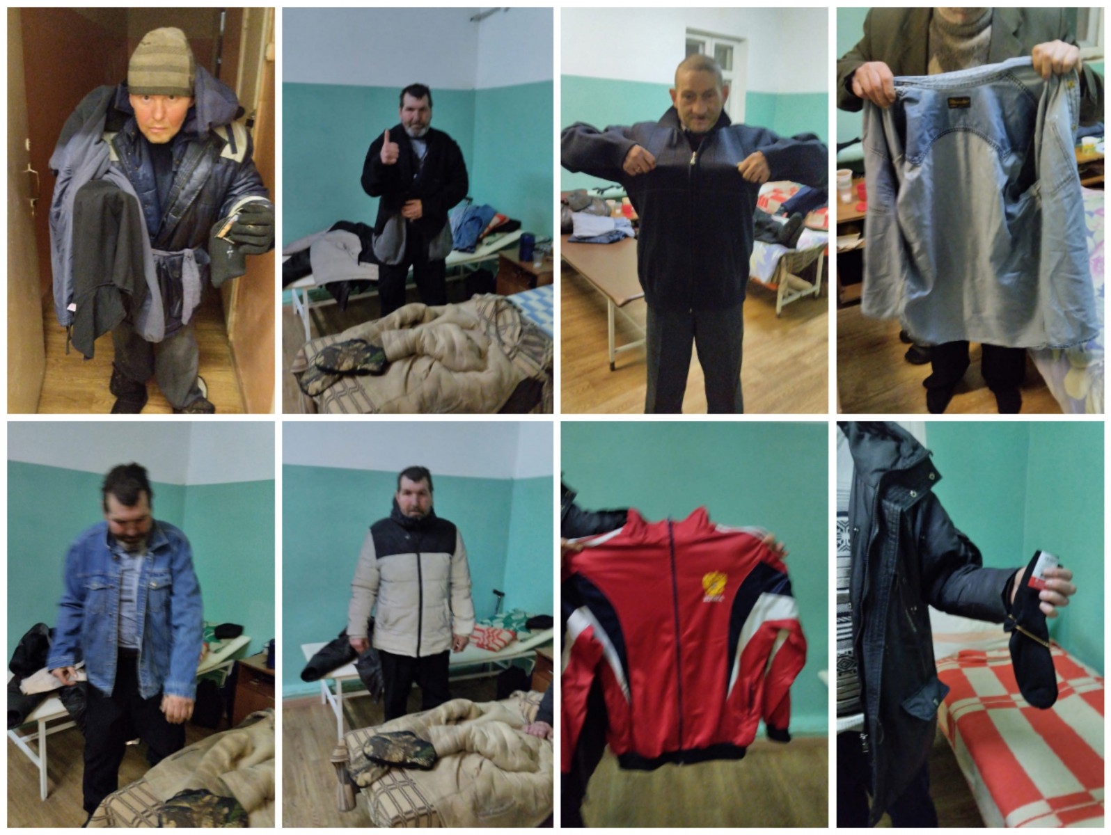 – Мы одели подопечных бездомных людей по максимуму. Для этого закупили футболки, нижнее белье, носки, кроме того, собрали с гуманитарного склада при храме Успения Пресвятой Богородицы верхнюю одежду, – рассказала руководитель волонтёров Жанна Мишанина.
