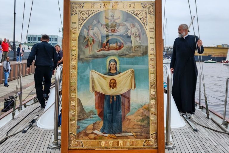 Во главе флота шла яхта «Веста» с иконой Пресвятой Богородицы «Порт-Артурская». Все участники морского крестного хода также получили небольшие списки Порт-Артурского образа для размещения на борту судов.