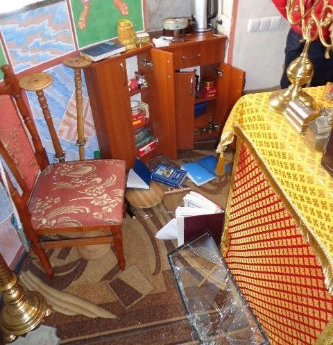 − Грабители разбили окно в алтаре, которое столь малого размера, что удивительно, как туда мог пролезть человек. Скорее всего, это был подросток, − рассказывает благочинный Мелитополя, настоятель Георгиевского храма протоиерей Максим Смирнов. − Грабители, не убоявшись Божия возмездия, проникли в православный храм, стремясь к наживе. Искали, чем можно поживиться, на престоле и в жертвеннике, тем самым осквернили алтарь, а затем вскрыли ящики с пожертвованиями на храм и унесли все собранные средства.