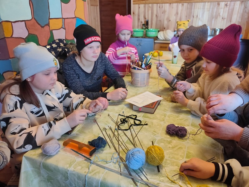 Приходы.ру 01.02.2023. В Казанском приходе села Большое Раково Курганской области воспитанников воскресной школы в январе начали обучать основам вязания на спицах. В дальнейшем дети собираются вязать носки для мобилизованных воинов.