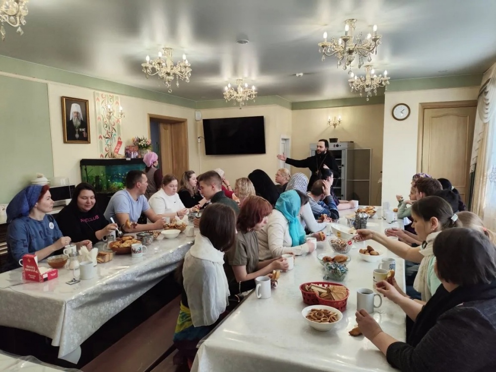 За чашкой ароматного чая беседа продолжилась в трапезной храма. Отец Софроний и руководитель Информационного отдела Хабаровской епархии Юлия Шутова говорили с родителями о самом важном – о вере, о надежде, о том, как находить силы для каждодневного подвига материнства и отцовства. «Вопросы у людей были самые разные – от истории создания Евангелия до обычных вопросов: о воскресной школе, исторических фактах про храмы Хабаровска, – рассказал священник. – Были и личные вопросы, которые гости смогли задать индивидуально».