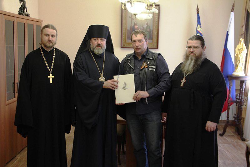 26 марта в здании духовно-просветительского центра святителя Иннокентия Московского договор о партнерстве между Благовещенской епархией и Амурским общественным мотообъединением «МотоПатриот» скрепили своими подписями епископ Благовещенский и Тындинский Лукиан и председатель объединения амурских мотоциклистов Василий Семёнов.