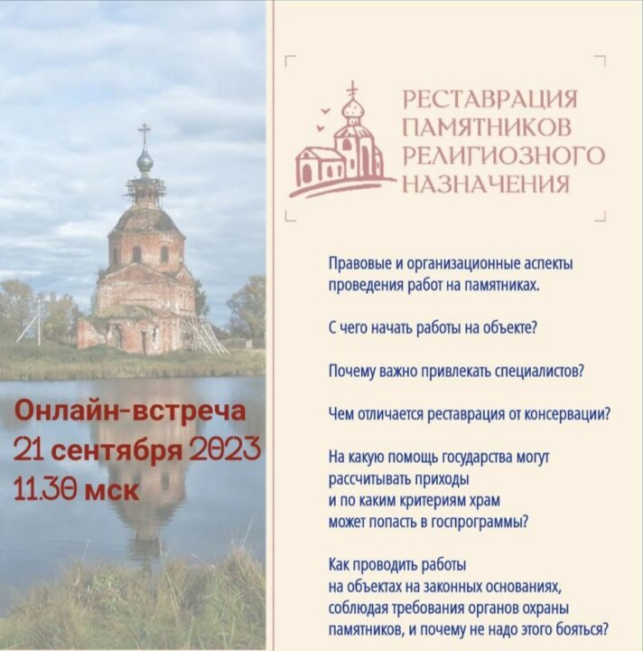Правовые и организационные аспекты проведения работ на памятниках архитектуры, культуры и истории обсудят на четвертом методическом онлайн-семинаре